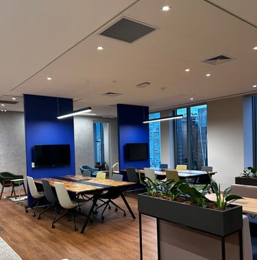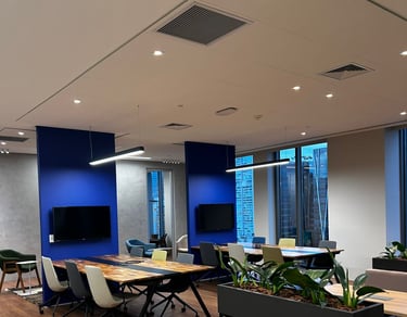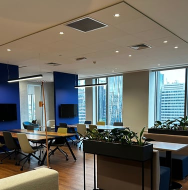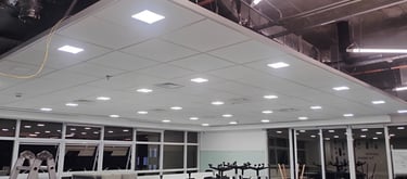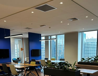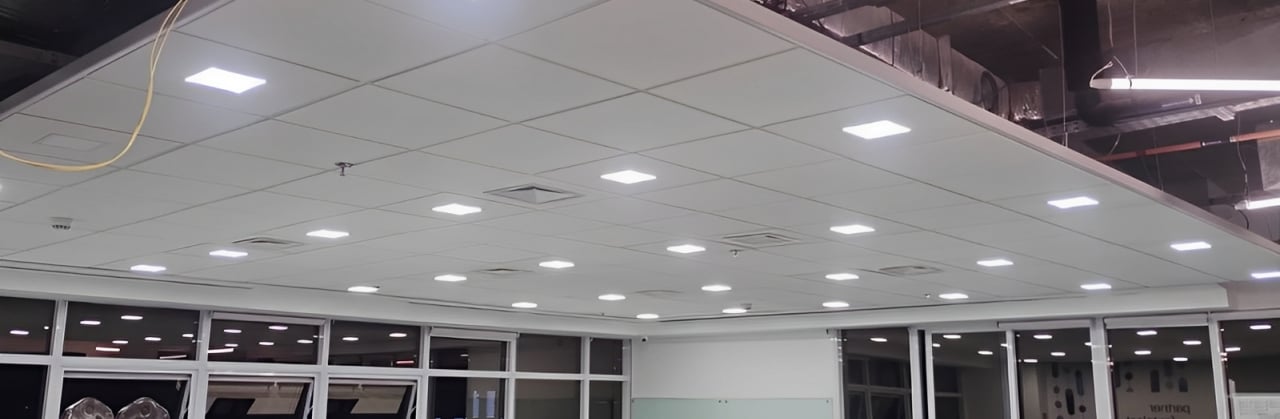 O Ecophon Focus™ DS é um sistema de forro acústico que combina alto desempenho em absorção sonora com um acabamento visual extremamente elegante. Seu grande diferencial é o sistema de junta oculta, que proporciona um visual contínuo e sofisticado, com placas que parecem suspensas no ar, sem perfis aparentes.