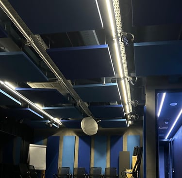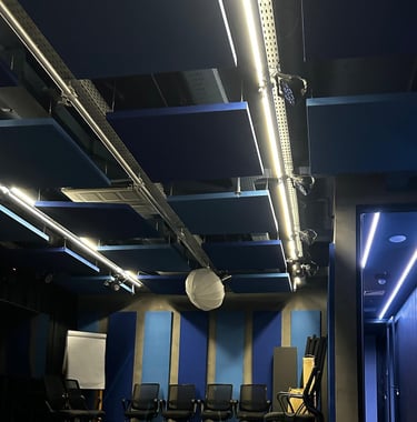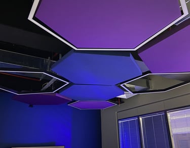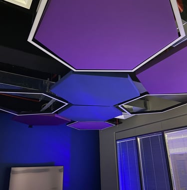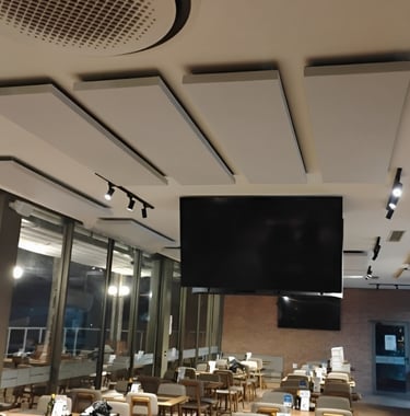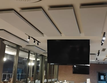 As Nuvens Acústicas oferecem uma solução eficaz para o controle de ruído em ambientes amplos! São elementos suspensos que melhoram significativamente a absorção sonora, ajudando a reduzir a reverberação e aumentar o conforto acústico. Disponíveis em diversos formatos (hexagonal, plano, etc), cores e dimensões, podem ser personalizados de acordo com o projeto. Fabricados com espumas acústicas como Melaminas ou Lã de PET, também podem ser revestidos em tecido, agregando estética e desempenho. Podem ser instalados de forma individual ou em conjunto, tanto no teto quanto em espaços verticais, contribuindo para um visual moderno e funcional.