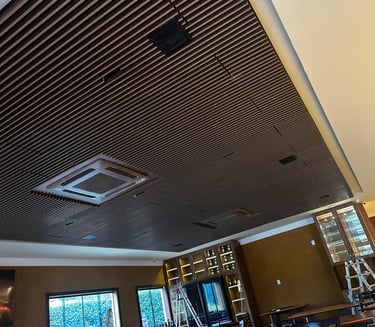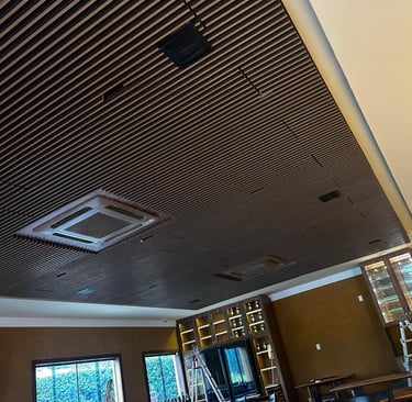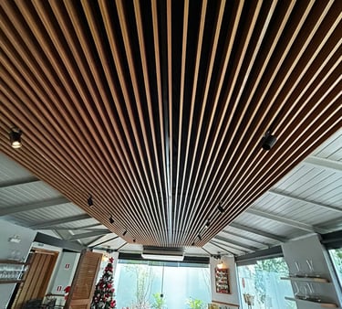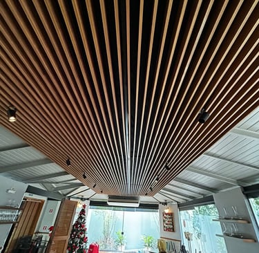 Os painéis ripados modulares aliam estética marcante e controle acústico de alta eficiência. Com design elegante em madeira e instalação modular, proporcionam absorção sonora eficaz e acabamento uniforme, valorizando qualquer ambiente.