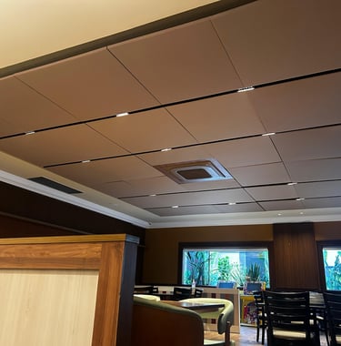Os Painéis Acústicos Revestidos de Tecido são ideais para quem busca unir o tratamento acústico com um toque de sofisticação! Disponíveis em diferentes espessuras, formatos e cores, adaptam-se perfeitamente a qualquer projeto arquitetônico. Revestidos com tecidos de alta qualidade, oferecem acabamento elegante e funcional. Podem ser instalados em paredes ou tetos, em superfícies planas ou curvas, proporcionando conforto sonoro e estética impecável.